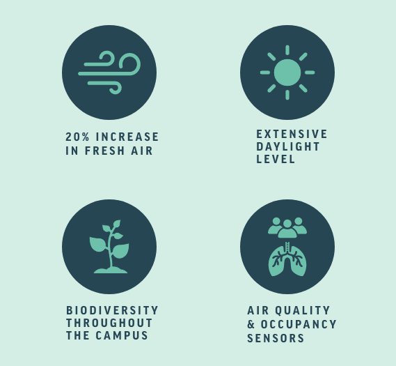 Coopers Cross delivers workplaces that are future-ready and sustainably-led. Improving your team's efficiency and performance. The smartest buildings in Dublin, targeting the highest sustainability credentials in the market.
